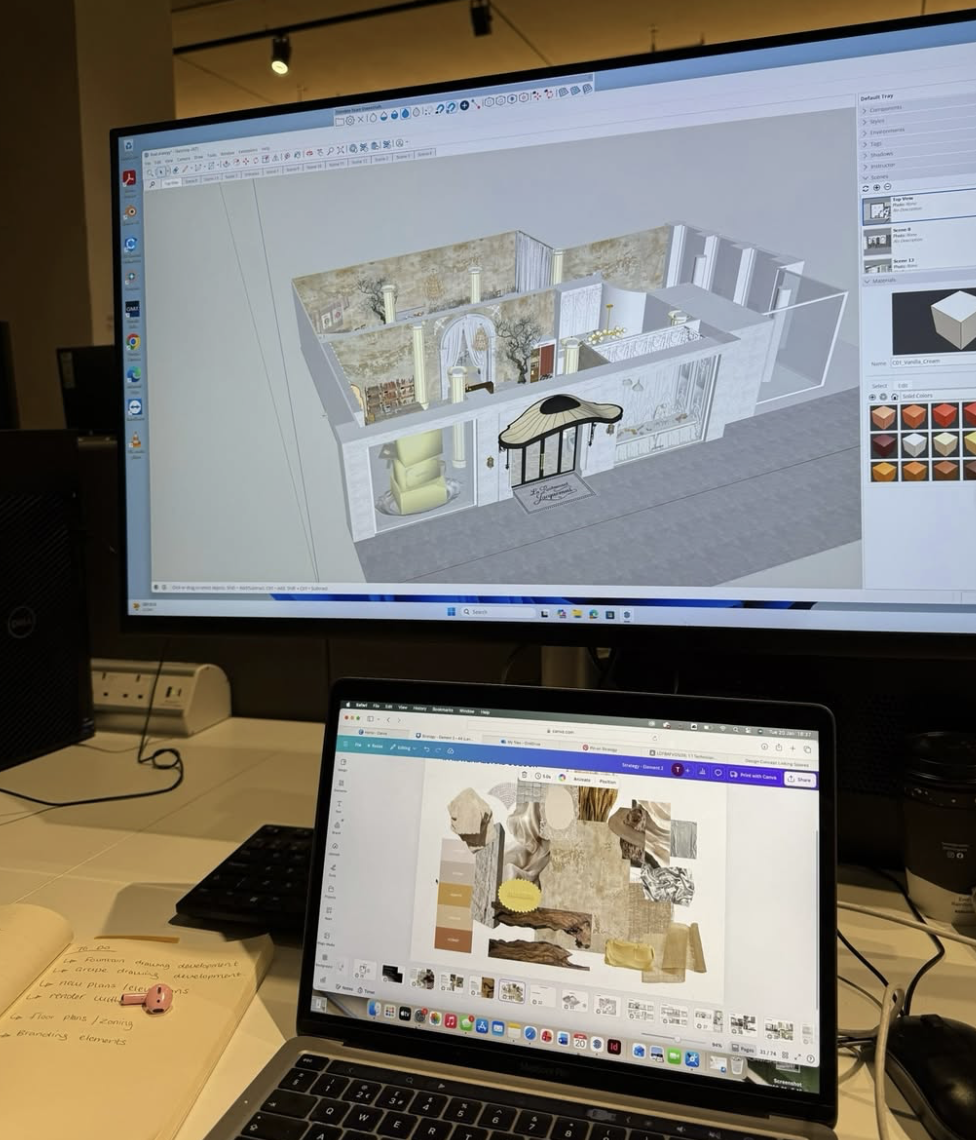 Three years of experience at Christian Dior in Retail Design & Visual Merchandising, shaping immersive brand environments and refined storytelling through space and detail.